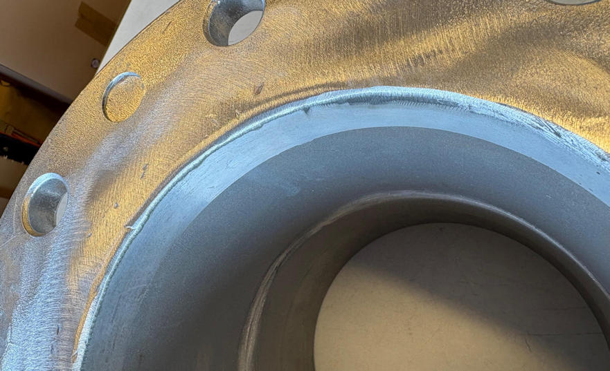 Overgang fra Camlock 8″ Han til DN200 flens. Bearbeidet ift transport av fisk.